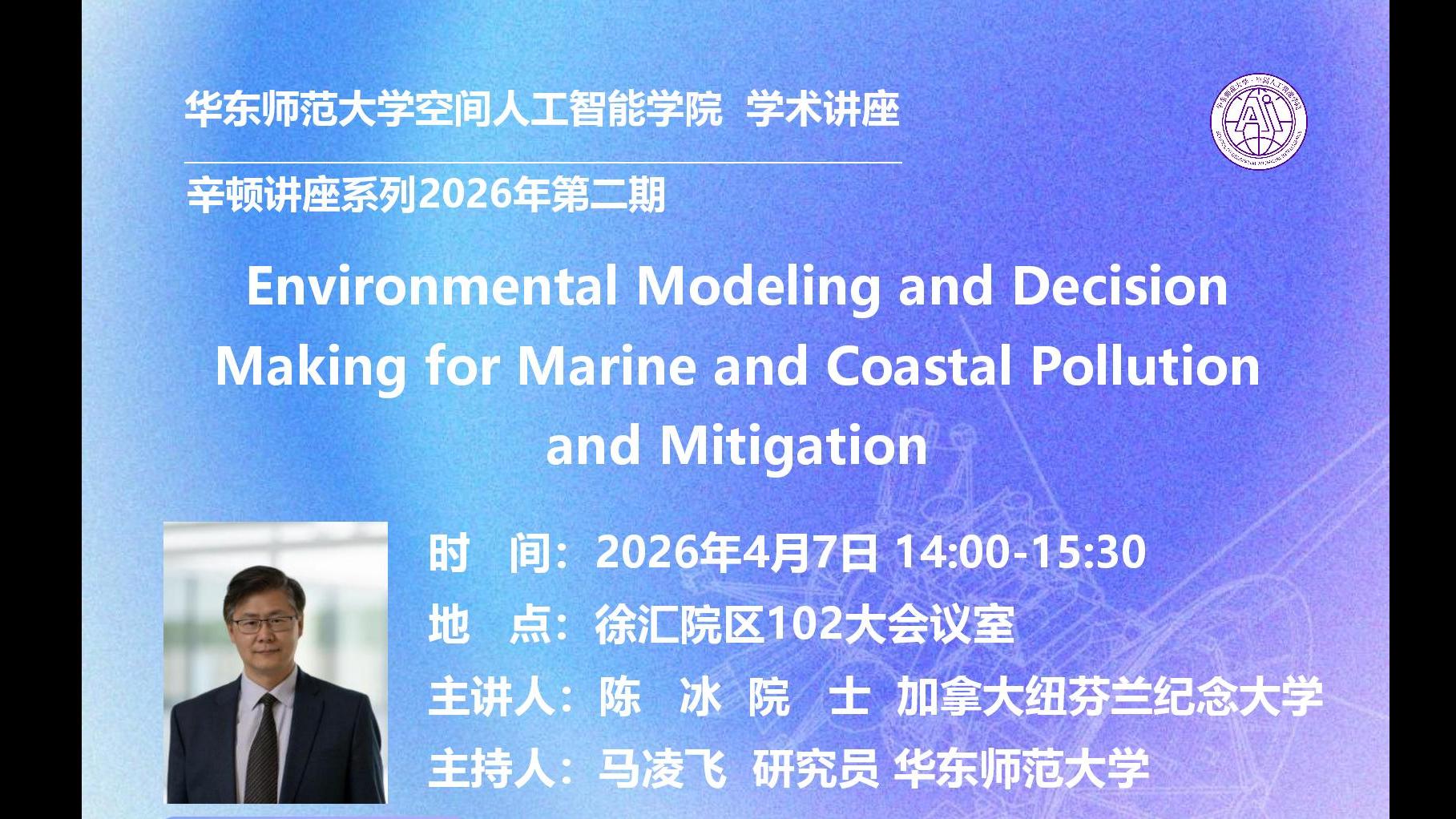 辛顿讲座 | 202602期 Environmental Modeling and Decision Making for Marine and Coastal Pollution and Mitigation